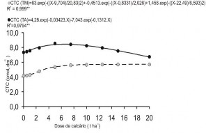 Figure 8. CTC in soils with medium texture (TM) and clayey texture (TA) as a function of limestone doses obtained by the CaCO3 incubation method.