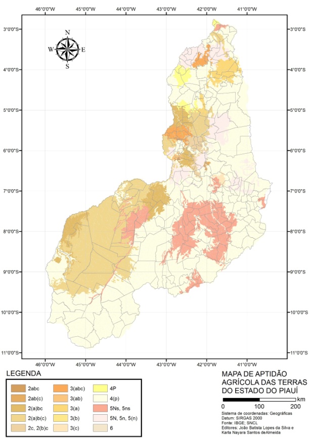 Assim, neste contexto, objetivou-se com esse trabalho realizar o mapeamento da aptidão agrícola das terras do estado do Piauí, a fim de oferecer uma visão sinóptica sobre o potencial agrícola de seus solos.