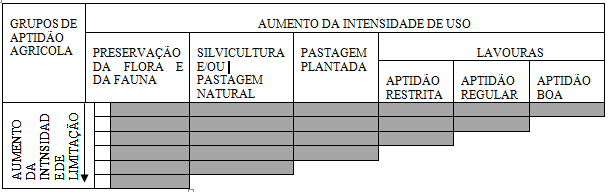 Figure 1. Land use alternatives according to the agricultural suitability groups. Source: Ramalho Filho; Beek (1995).