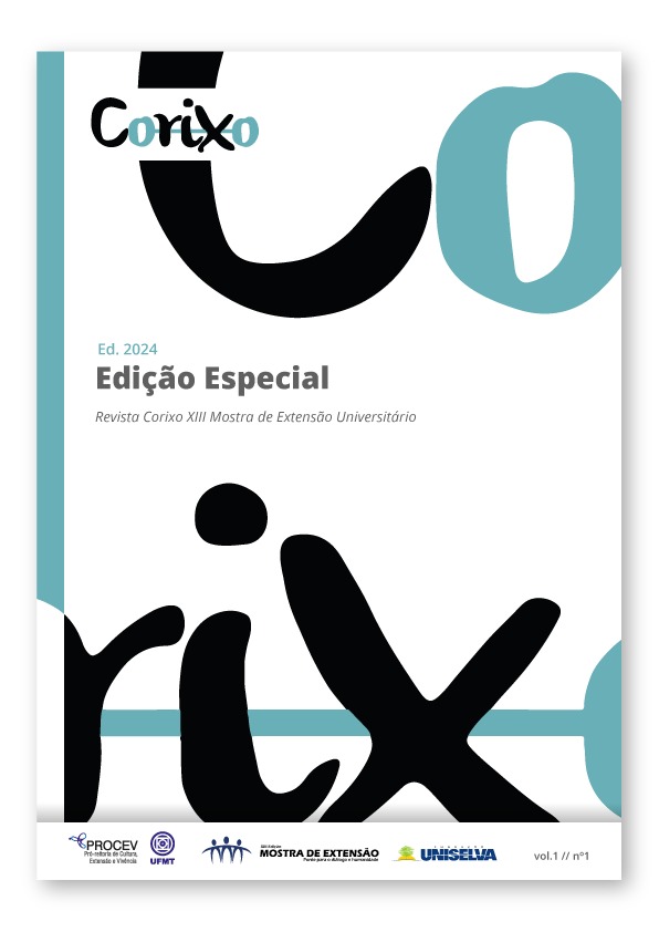 v. 8 n. VIII (2021)A Revista Corixo de Extensão da Universidade Federal de Mato Grosso (UFMT) é uma publicação da Pró-Reitoria de Cultura, Extensão e Vivência (PROCEV), por meio da Coordenação de Extensão (CODEX), cujo objetivo é criar um instrumento de comunicação que possibilite o intercâmbio de intervenções, reflexões, práticas e resultados de ações de Extensão Universitária, desenvolvidas pelas Universidades de Ensino Superior do Brasil e do mundo, por meio de uma rede ampla e diversificada de atores e instituições sociais envolvidos com ações de extensão nas universidades.
