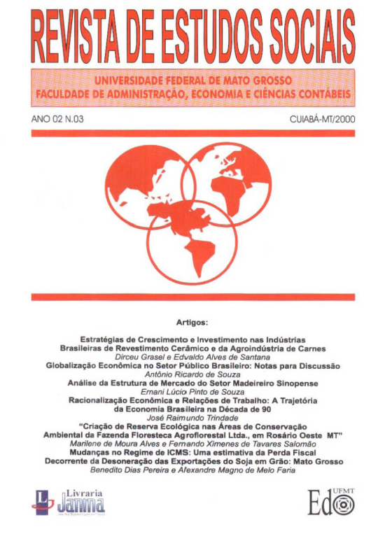 Com dados relativos ao período compreendido entre 1989 e 1998, tendo o Estado de Mato Grosso como ambiente de estudo, se estima uma função oferta de exportação de soja em grão. Através dessa equação avalia-se a importância relativa da influência do preço internacional de soja e da Lei Kandir sobre a quantidade exportada dessa commodity, além de se estimar a perda de receita fiscal do Governo do Estado de Mato Grosso decorrente da desoneração das exportações de soja instituída pela Lei Complementar n°. 87/96. Os resultados mostram que as duas variáveis independentes desempenharam efeitos estatisticamente significantes e a estimativa da perda de receita fiscal do Governo Estadual decorrente da Lei Kandir, no triênio 1996-98, gira em tomo de RS30 milhões.